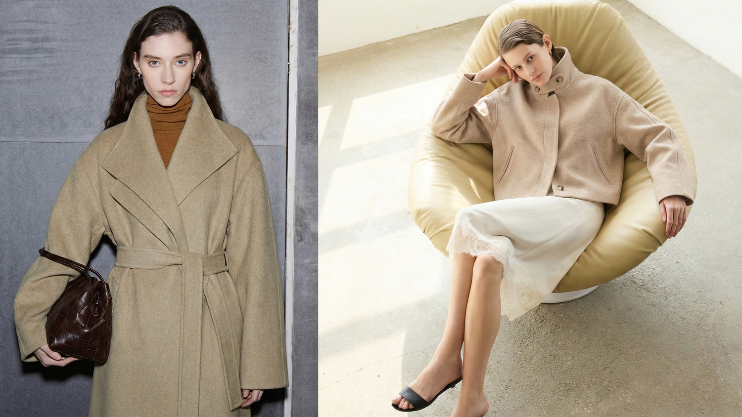 Defined by its architectural silhouette and tactile softness, the double-faced wool coat evokes modern restraint