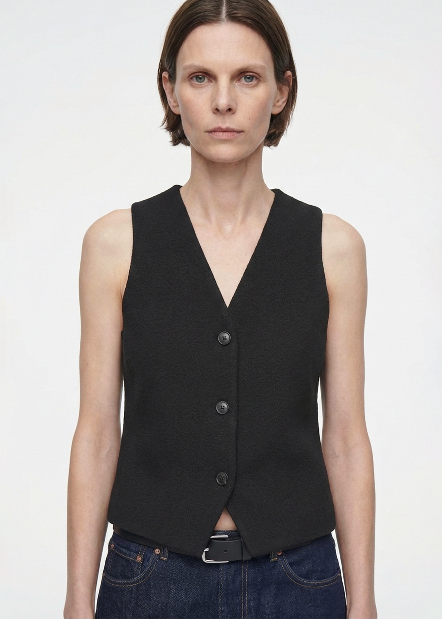 The knitted waistcoat provides a modern approach to traditional elegance. Crafted from a refined full Milano stitch, this hybrid of a vest and waistcoat has a V-neckline and subtle mottled buttons for timeless sophistication. A luxurious addition to any ensemble.