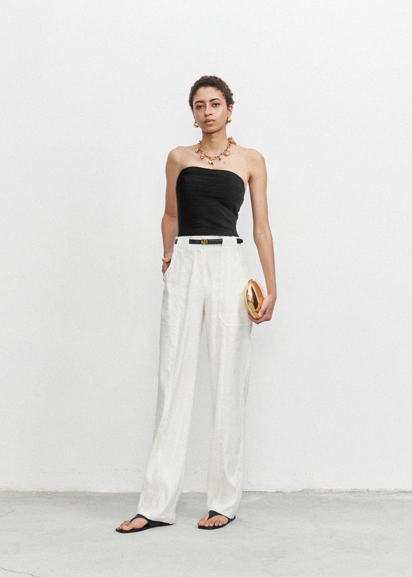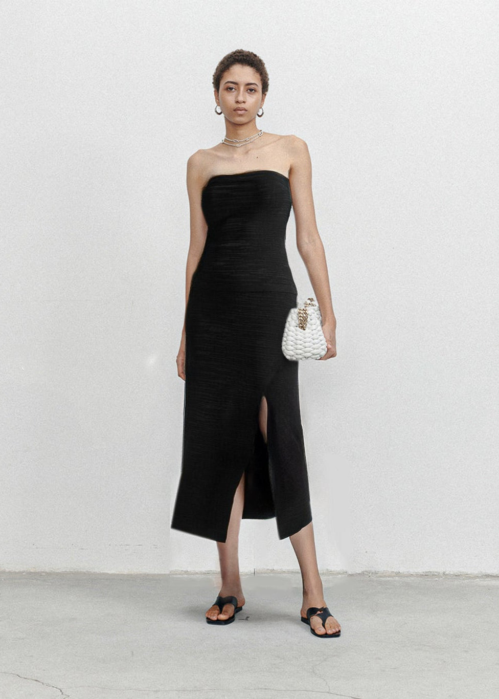 The Textured Tube Top is the perfect addition to any sophisticated wardrobe. Knitted from a sturdy and textured material, this sleeveless bandeau features a subtle curved neckline to keep you comfortable while looking polished. It offers a versatile look, allowing you to pair it with the matching skirt or any of your favourite skirts.